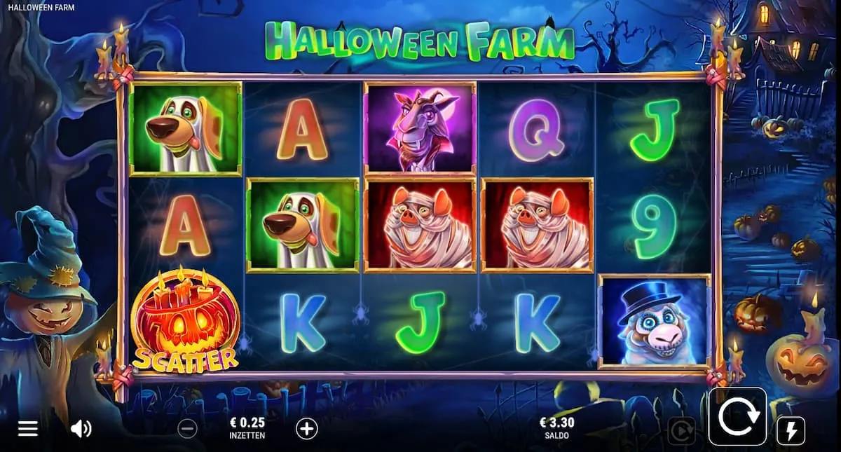 De juiste mix van griezelig en grappig vind je in de slot Halloween Farm van GameArt.