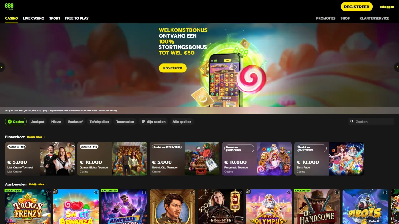 Daarmee bedient 888 zowel high rollers als spelers met een klein budget die met één draai kans maken. Meedoen is gratis, aanmelden is verplicht. Er geldt geen minimale inzet en je wint echt geld zonder rondspeelvoorwaarden.
