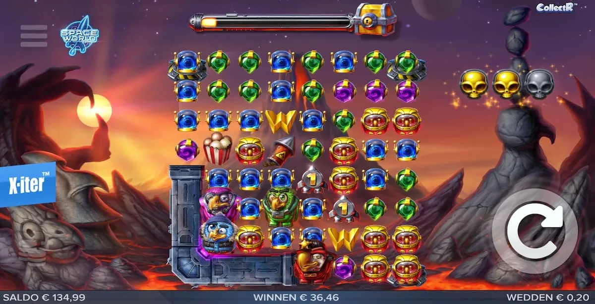 - Collection meter: Boven het veld staat een meter. Alle verzamelde edelstenen en wilds vullen de meter. Bij een volle meter worden er drie schatkisten op je veld geplaatst. Die schatkisten onthullen speciale symbolen. Je kunt in één beurt de meter meerdere keren vullen.